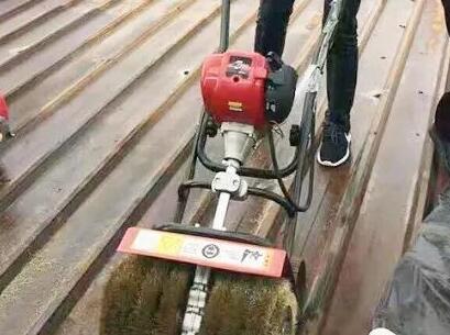 彩钢瓦翻新的工艺流程:1、除锈工艺要求:基层清理彻底,采用专用设备进行打磨除锈或喷砂除锈,除锈后基层不得有锈蚀斑点存在,油污、油脂,沙尘、铁砂及金属氧化物等清理干净。良好的打磨底材赋予更长时间的耐久性彩钢瓦的底材一般是卷材,卷材在出厂前是喷涂了氨基烤漆的,这层漆的硬度有1H。表面也比较光滑。如果不打磨或者不拉毛,彩钢瓦的漆不能良好的抓牢,自然非常易脱落或者爆皮。漆膜的耐久性是建立在有良好的附着力的基础上,所以不管彩钢瓦表面无论生锈与否都要拉毛,有经验的人的会发现,生锈的部位打磨后比不拉毛的部位漆膜耐久性更长。打磨除锈后、必须在六小时内喷底涂进行防腐处理,进行喷涂工序前,如遇下雨或其他造成基体钢材表面潮湿的情况时,要待环境达到施工条件后,用干燥的压缩空气吹干表面水分后除锈;除锈后的底材表面达到除锈等级st2.5,表面用毛刷等工具清扫干净,才能进行下道工序,除锈合格后的底材表面呈现金属光泽,每平方米金属表面锈斑和油漆不得大于5%,如在底涂前已返锈,重新打磨除锈或喷砂除锈,不可降低磨料要求,以免降低粗糙度。机器打磨生锈的彩钢瓦屋面