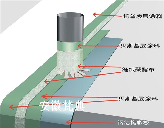 厂房屋面的搭接缝、螺钉、管道、风机、采光板、屋脊等一直是一个防水头痛的问题,常规的屋面防水施工工艺均不能很好地解决屋面的渗漏问题,屋面防水施工工艺就能很好地解决上述问题。